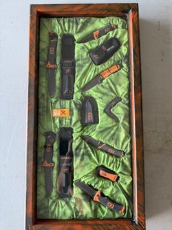 Gerber knife set (Bear Grylls edition) custom painted wooden and glass case$250New Port Richey, FL