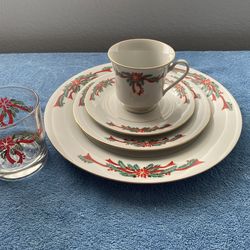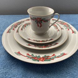 Vintage Christmas China Dinnerware Set. Complete Service For 8 Plus 3 Serving Pieces. Poinsettia And Ribbons With Gold Trim. $120.00 Firm.$120Garden Grove, CA