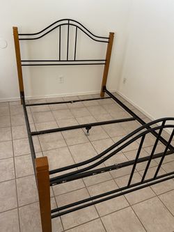 Queen Size Headboard And Foot Board. Wood And Black Metal Frame. Great Condition. Goes With Any Decor. $40.00.$40Garden Grove, CA