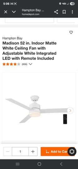 Madison 52 in. Indoor Matte White Ceiling Fan with Adjustable White Integrated LED with Remote Included$35Nineveh, IN