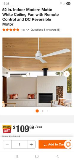 52 in. Indoor Modern Matte White Ceiling Fan with Remote Control and DC Reversible Motor$40Nineveh, IN