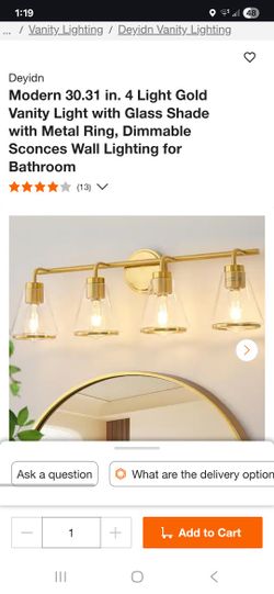 Modern 30.31 in. 4 Light Gold Vanity Light with Glass Shade with Metal Ring, Dimmable Sconces Wall Lighting for Bathroom$25Nineveh, IN