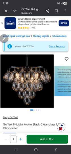 GoYeel 8 -Light Matte Black Clear glass Metal Chandelier$50Nineveh, IN