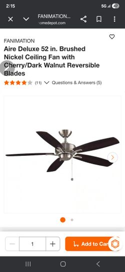 Aire Deluxe 52 in. Brushed Nickel Ceiling Fan with Cherry/Dark Walnut Reversible Blades$40Nineveh, IN