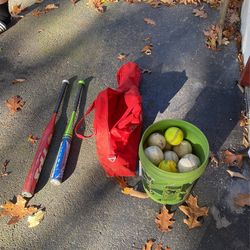 Softball / Baseball Bats And A Bucket Of Softballs $30Hewitt, NJ