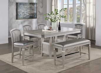 New 6PC Champagne Silver Finish Counter Dining Table With 4 Chairs & Bench $1,175Orange, CA