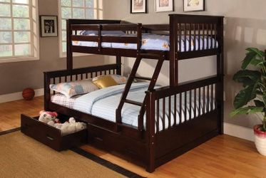 New Mission Style Espresso Twin Full Bunk Bed With Drawers $595Orange, CA