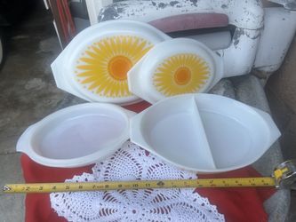 2 Vintage Pyrex Daisy/Sunflower Oval Divided Casserole Dish 1.5 Qt Lid 945-C$150Artesia, CA