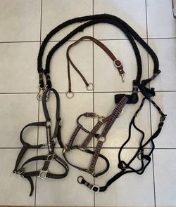 Horse Lot Of Used Items: 2 Nylon Halters, 1 Rope Halter, 1 Leather Training Fork & 2 Cross Ties$40Chandler, AZ
