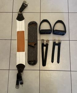 English Horse Used Tack Lot: composite Stirrups, Wool Girth Pad, 2 Girth Extenders & Girth$25Chandler, AZ