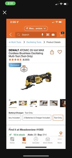 DEWALT ATOMIC 20-Volt MAX Cordless Brushless Oscillating Multi-Tool (Tool-Only)$90Sacramento, CA