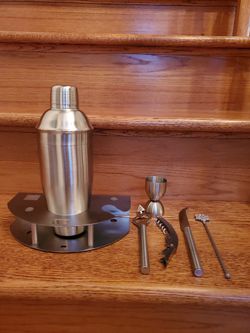 Cocktail mixer including shaker, stirrer, can opener, shot measure cup, cheese knife, brand new$30Orland Park, IL