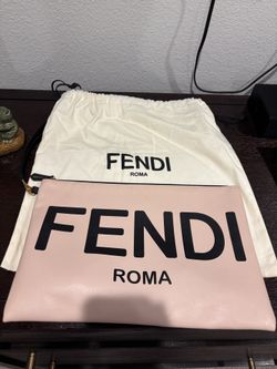 FENDI logo light pink LARGE FLAT POUCH clutch wristlet Verified business seller Logo printed in black at face. Detachable leather wristlet strap with $680Houston, TX