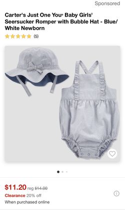 Carters Just One You Baby Girls Seersucker Romper With Bubble Hat - Blue/White$5Lynwood, CA