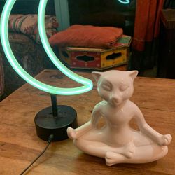 Pair Of Kitschy Home Decor Pieces — Crescent Moon Light & Meditating Kitty$20Altadena, CA