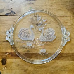 Vintage Clear Glass Mikasa Swan Cake Plate / Platter / Tray $20Altadena, CA