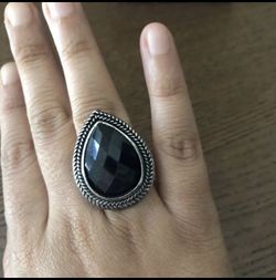 Antique Silver Drop Shaped Black Stone Ring $12South Plainfield, NJ