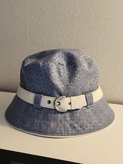 Rare Vintage Blue Coach Signature Monogram, leather trim, Canvas Bucket Hat with Buckle. New with tags.$88Miami, FL