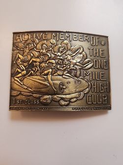 Vintage 1977 Limited edition "Active member of the one mile high club" first class private edition 1948, Executive Souvenirs. Brass plated Belt Buckle$70Miami, FL