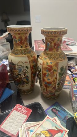 Vintage Satsuma Moriage Vase - Hand Painted Geisha - 7.$120Rialto, CA