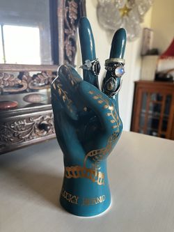 Lucky Brand Rare Teal & Gold Peace Sign Henna Tattoo Jewelry Stand Ring Holder Display Boho Home Decor$90Mesa, AZ