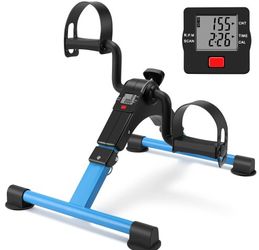Folding Pedal Exerciser Mini Exercise Bike Portable Peddler Arms and Legs Low Impact Workout Bike with LCD (Blue)