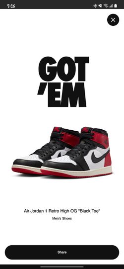 Jordan 1 BLACK TOE Reimagined Size 10.5$180Anaheim, CA