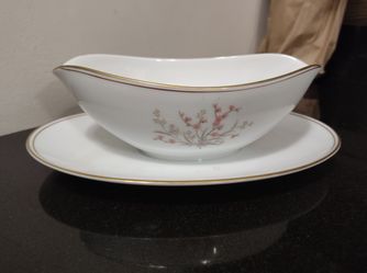 Noritake China Claire 5902 Gravy Boat with Attached Underplate Pink Flowers VGC$15North Chesterfield, VA