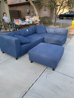 Blue Fabric Sectional With Matching Ottoman $130Chandler, AZ