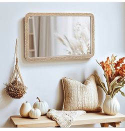 SoldOnly $65: 24x36 Large Wall Mirror, Wood Frame with Braided Seagrass and Wooden Bead$65Mesa, AZ