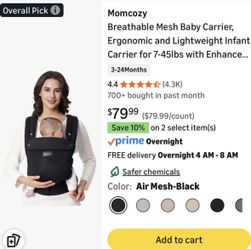 NEW Momcozy Breathable Mesh Baby Carrier, Ergonomic and Lightweight Infant Carrier for 7-45lbs with Enhanced Lumbar Support$45Santa Clarita, CA