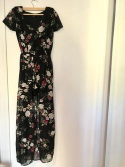Sheer tan dress with black velvet rose print$9Phelan, CA