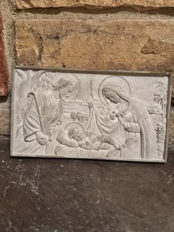 Nativity scene bas-relief plaque Holy Family handcrafted religious wall art Christian décor Christmas manger concrete sculpture$25Riverton, NJ