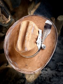 The Bone ☠️ custom cowboy Hat distressed size Medium: 56 - 57 centimeters Inches 21 7/8” - 22 1/4”$99Humble, TX