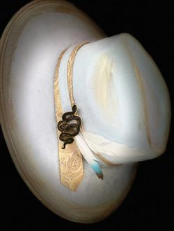 💛🐍The Bronze Serpent 💛🐍 Fedora Hat Celeste color hand distressed one of a kind size 7 1/4”-7 3/8$99Humble, TX