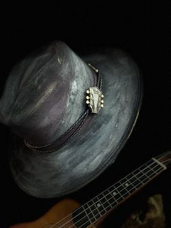 The Midnight Guitar 🖤🎼 custom black distressed Fedora Hat size Large 7 1/4” - 7 3/8”$99Humble, TX