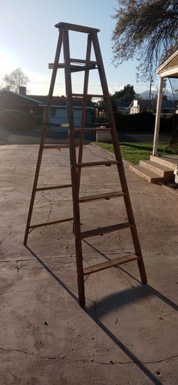 Vintage tall wooden ladder$30San Bernardino, CA
