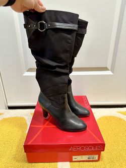 Women’s Aerosoles Paperweight 3” Heels Slouch Tall Boots Size 6M in Black $50Puyallup, WA