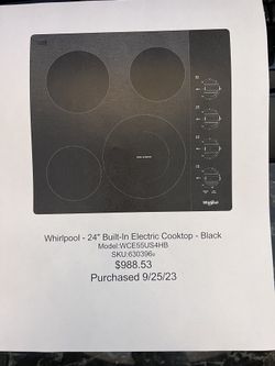 Whirlpool 24” Built In Electric Cook Top Black$600Santee, CA