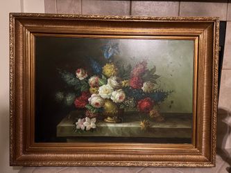 Vintage Still Life Oil Painting On Canvas Ornate Gold Gild Frame 46/34”$175Glendora, CA