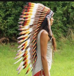 Replica/costume Quality. Native American Indian feather headdress war bonnet. Have a breastplate red/beige neck piece. $99Vancouver, WA