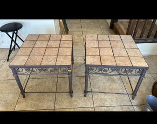 two metal 26.5"x 26.5" x 24 " tall ceramic tile side tables.$30Las Vegas, NV