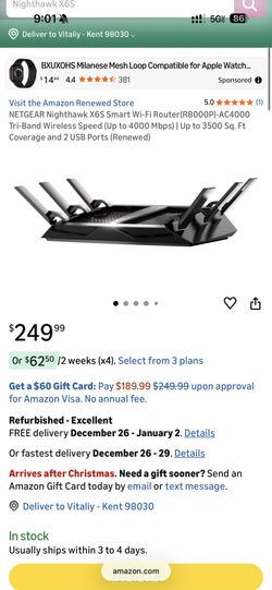NETGEAR Nighthawk X6S Smart Wi-Fi Router$150Auburn, WA