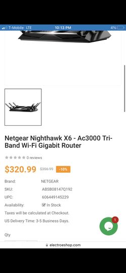 Netgear Nighthawk X6 - Ac3000 Tri-Band Wi-Fi Gigabit Router$150Kent, WA