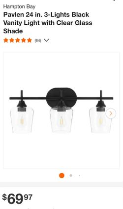 Hampton Bay Pavlen 24 in. 3-Lights Black Vanity Light with Clear Glass Shade$50Scottsdale, AZ