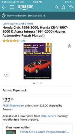 Haynes repair manuals for Civic, CR-V & Integra$20Stockton, CA