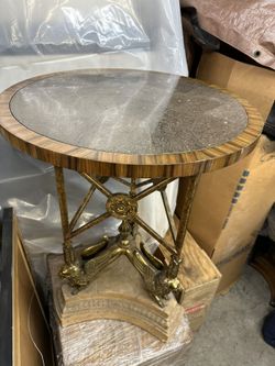 Marble Top Empire-Style Accent Table w/ Brass Sphinx Base$750Santa Fe Springs, CA
