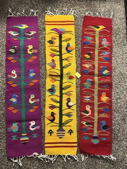 Zapotec Oaxacan 9"x39" Hand Woven Fuchsia Birdies Tree of Life Colorful Home Living Furniture Wall Floor Wool Weaving Tapestry Rug Runner$60Rowland Heights, CA