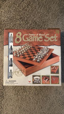 Pewter & Wood 8-Game Set – Chess, Checkers, Backgammon, Cribbage – Complete w/ Box$40San Diego, CA