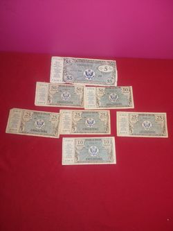 7 Us Military Payment Certificates 10c 25c 50c & 5 Dollars $95Los Angeles, CA